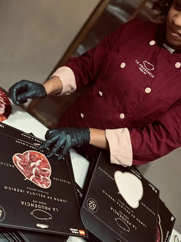 En La Prudencia Boutique no solo vendemos jamón ibérico en Madrid, ofrecemos una experiencia gastronómica completa. Podrás degustar nuestros jamones y embutidos en un entorno cuidado, donde cada bocado refleja el origen, el tiempo y el saber hacer de nuestra marca.