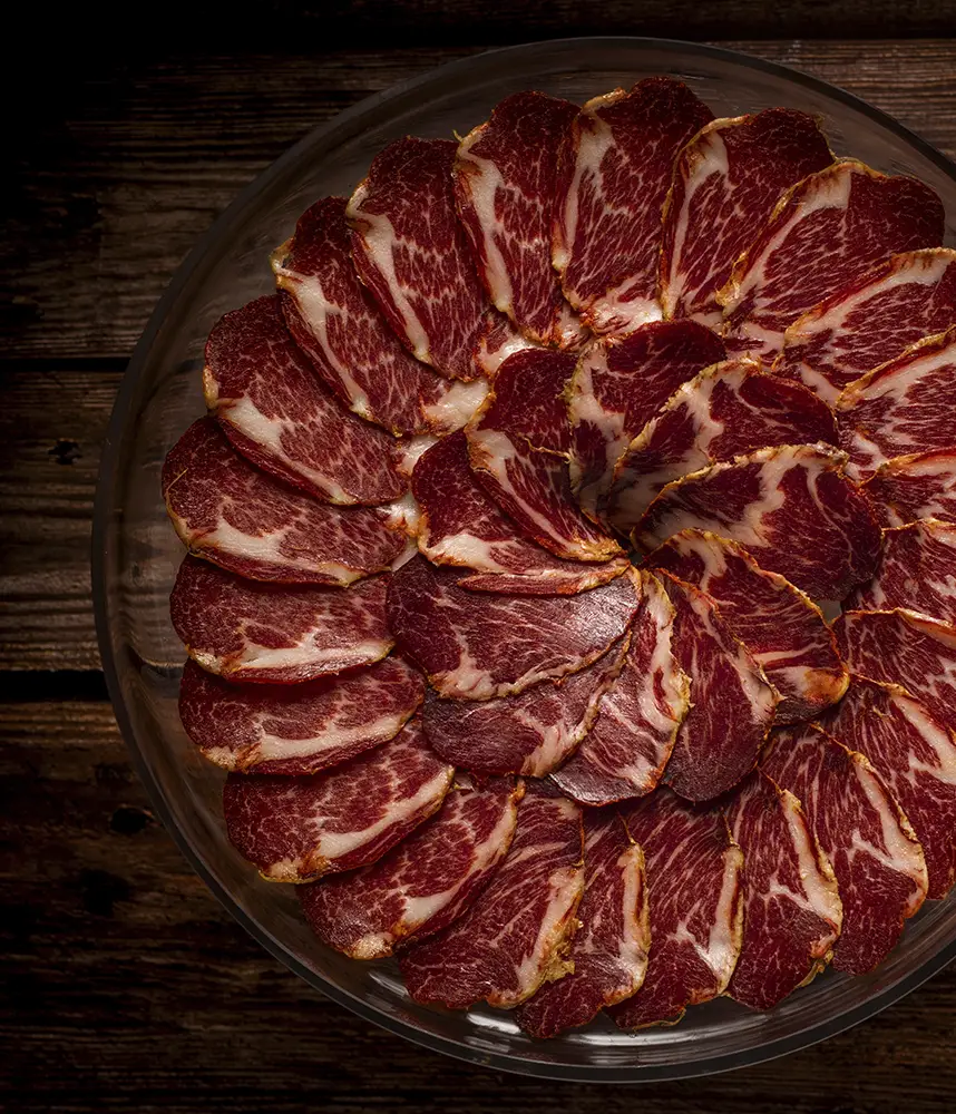 El Lomito de Bellota Ibérico La Prudencia, presenta un color granate intenso con vetas de grasa de tonos perlados, tacto suave y untuoso, sabor persistente en boca con un aroma intenso y dulce. El adobo hecho de pimentón y especias naturales, junto con un proceso de curación natural hace que nuestro lomo sea una pieza única de sabor inconfundible.