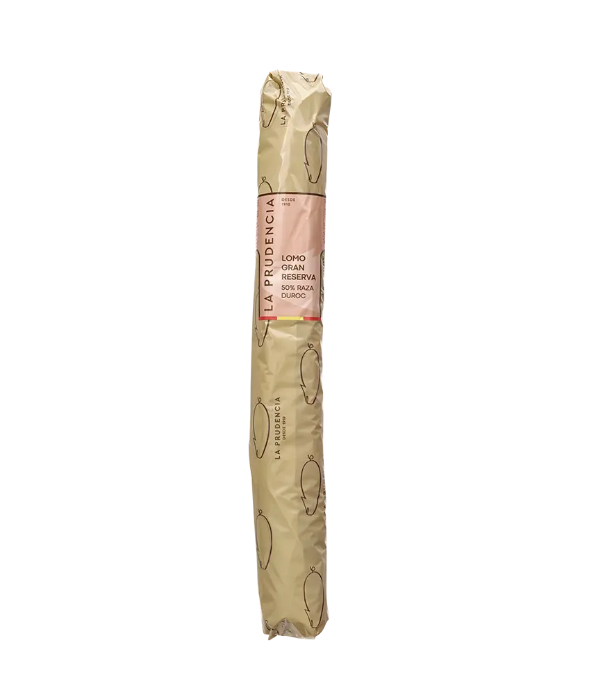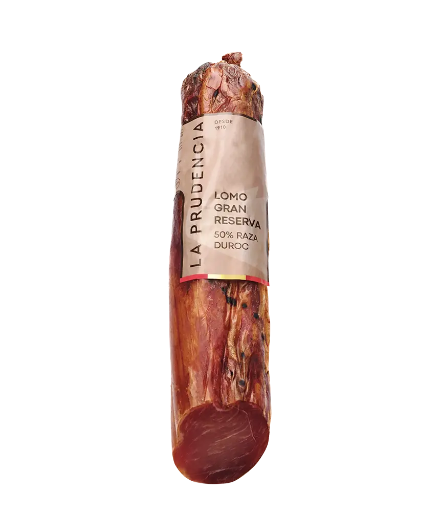 El Lomo Gran Reserva La Prudencia, se elabora de forma artesanal con el músculo ileoespinal del cerdo blanco. Escogido cuidadosamente de raza Duroc, grasos y grandes. Después nuestros maestros lo aderezan pasando por un minucioso proceso de curado-maduración de 6 meses en nuestras bodegas, dando lugar a piezas gran reserva únicas a degustar por los paladares más selectos.