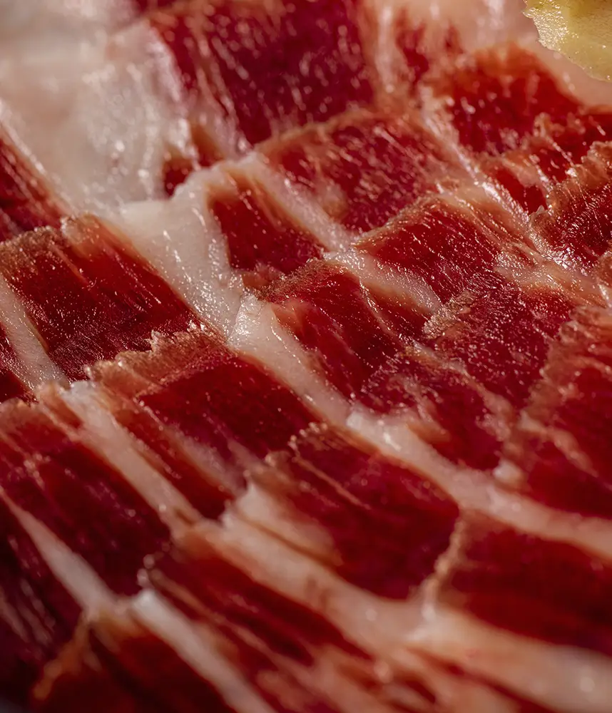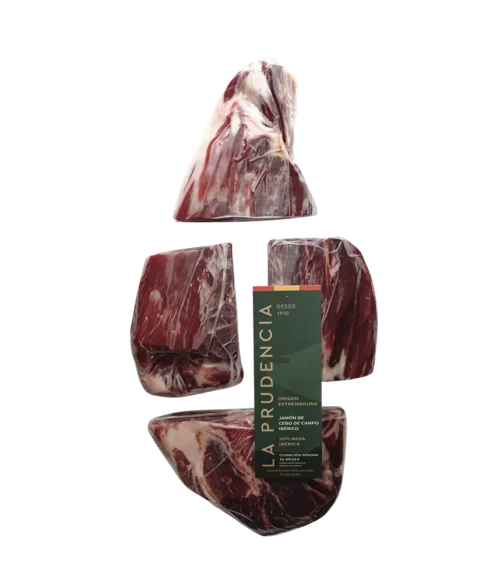 Jamón de bellota ibérico La Prudencia, procedente de cerdos ibéricos de raza propia criados en libertad en nuestras fincas extremeñas. Alimentados exclusivamente de bellotas proporcionadas por las encinas y alcornoques propios de una dehesa especial, un paraje único. Nuestros cerdos comen cerca de 9 kilos de bellotas al día durante la montanera (de noviembre a febrero), para alcanzar un peso óptimo de 180 Kg.