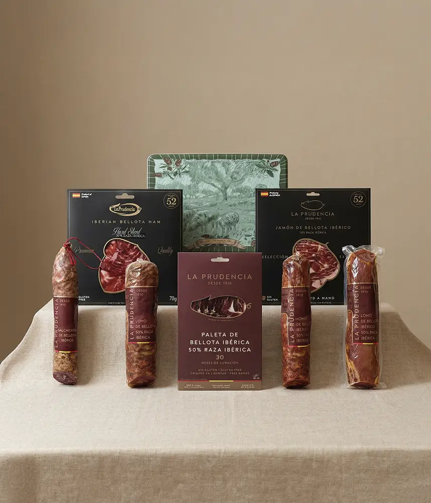 En La Prudencia ofrecemos packs gourmet de jamones y embutidos artesanales, ideales para regalar con tradición, calidad y buen gusto.